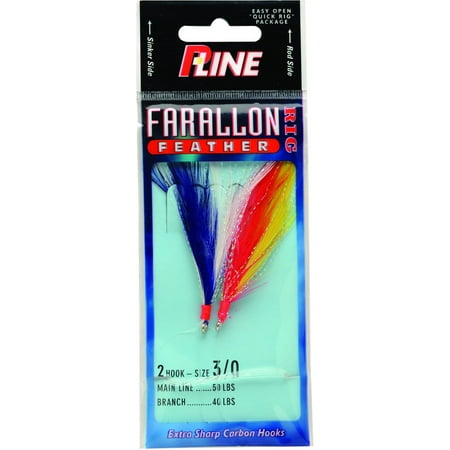 P-Line Farallon Feather Rig Fishing Terminal Tackle 5/0 2 hooks Mix is made with the highest quality hooks and leaders these feathers make great vertical jigs. Anglers from Mexico to the Pacific Northwest and Florida up through Canada are vertical jigging cod rockfish baitfish smelt croaker and various similar fish on these jigs.