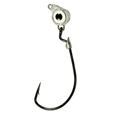 Melding a weedless Texas rig with a free-pivoting jighead and the prominent strike target of oversized 3D eyes the Texas Eye Jighead gives anglers an unbeatable one-two punch. Designed to easily shed grass and prevent fouling or snagging on wood rock or shell the flat sided head and upturned line tie eyelet creates a stable jighead with a spoon-like swimming quality when paired with either paddle-tail swimbaits or straight-tail baits. The Texas Eye Jighead features beefy construction that makes it ideal for a variety of applications that require a snag-resistant presentation in fresh- or saltwater from pitching baits to laydowns for trophy largemouth to plying the Louisiana marsh for bull redfish.