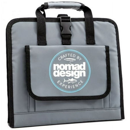 Nomad Design Jig Wallet A fully comprehensive storage system for your entire arsenal of jigs the Nomad Design Jig Wallet is built with the same quality and attention to detail as Nomad Design s renowned series of lures. The Jig Wallet features a super tough construction that includes a unique hook mesh system that holds assist hooks in place directly above the jig pocket allowing anglers to neatly and safely organize fully rigged jigs that are ready to fish. This jig bag s double sided storage system provides enough space for anywhere from 24 to 48 jigs depending on jig size. To double the Jig Wallet s storage capacity the�Nomad Design Jig Wallet Insert Sleeve�(sold separately) secures to the inside of the Jig Wallet with Velcro to make the ultimate jig storage system. Built to handle the toughest conditions.